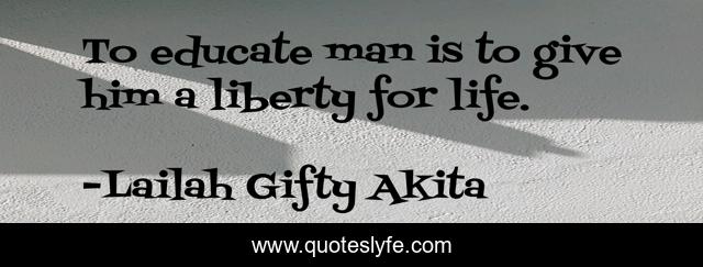 This page presents the quote "To educate man is to give him a liberty for life.". Author of this quote is Lailah Gifty Akita. This quote is about self-study, life, freedom, philosophy, liberty, education,.