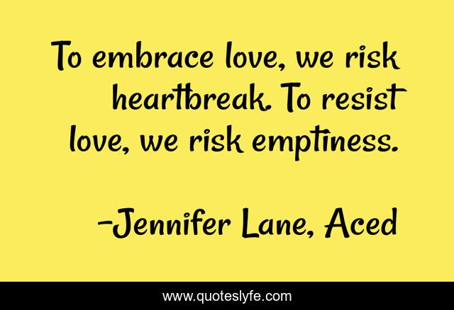 "Jennifer Lane, Aced Quotes." Quoteslyfe.com, 2025. Sun. 07 Dec. 2025. <https://www.quoteslyfe.com/quote/To-embrace-love-we-risk-heartbreak-To-103591>.