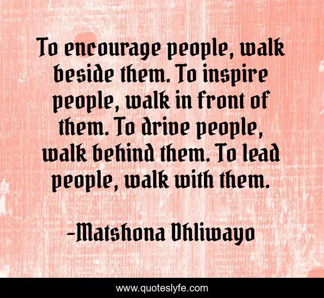 "Matshona Dhliwayo Quotes." Quoteslyfe.com, 2025. Mon. 08 Dec. 2025. <https://www.quoteslyfe.com/quote/To-encourage-people-walk-beside-them-To-15808>.