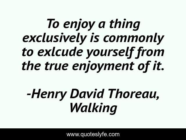 "Henry David Thoreau, Walking Quotes." Quoteslyfe.com, 2025. Fri. 05 Dec. 2025. <https://www.quoteslyfe.com/quote/To-enjoy-a-thing-exclusively-is-commonly-214042>.