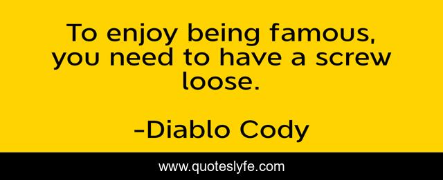 This page presents the quote "To enjoy being famous, you need to have a screw loose.". Author of this quote is Diablo Cody. This quote is about enjoy, need,.