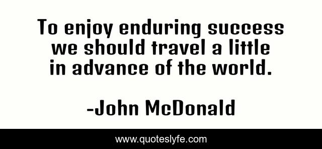 This page presents the quote "To enjoy enduring success we should travel a little in advance of the world.". Author of this quote is John McDonald. This quote is about enjoy, world, success,.