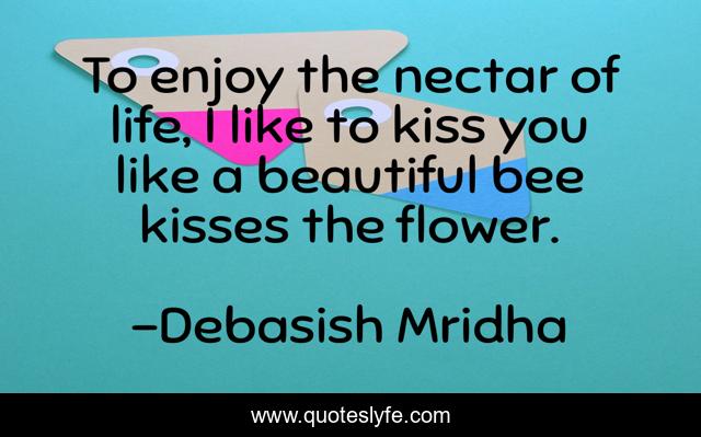 This page presents the quote "To enjoy the nectar of life, I like to kiss you like a beautiful bee kisses the flower.". Author of this quote is Debasish Mridha. This quote is about flower, nectar-of-life, debasish-mridha, philosophy, kisses, quotes, inspirational, enthusiasm, debasish-mridha-m-d,.