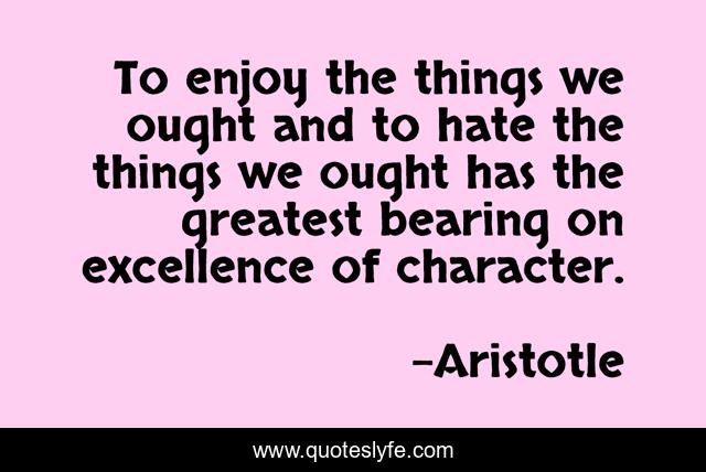 This page presents the quote "To enjoy the things we ought and to hate the things we ought has the greatest bearing on excellence of character.". Author of this quote is Aristotle. This quote is about character, personality,.