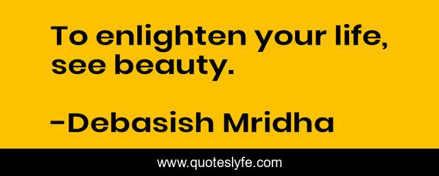 This page presents the quote "To enlighten your life, see beauty.". Author of this quote is Debasish Mridha. This quote is about beauty, philosophy, debasish-mridha, quotes, inspirational, enthusiasm, debasish-mridha-m-d, enlighten-your-life,.