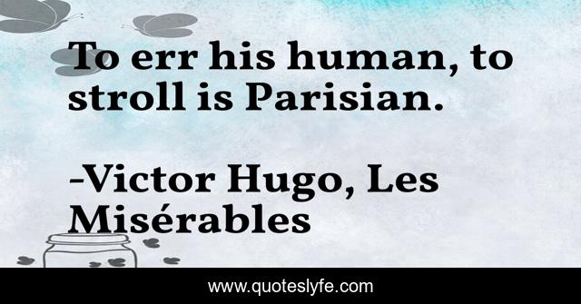 This page presents the quote "To err his human, to stroll is Parisian.". Author of this quote is Victor Hugo, Les Misérables. .