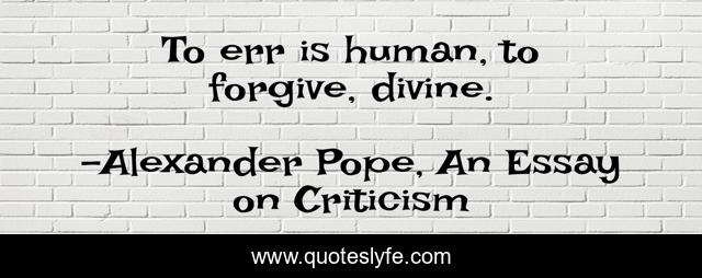 "Alexander Pope, An Essay on Criticism Quotes." Quoteslyfe.com, 2025. Fri. 05 Dec. 2025. <https://www.quoteslyfe.com/quote/To-err-is-human-to-forgive-divine-70959>.