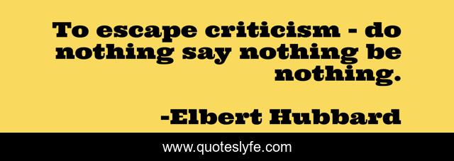 "Elbert Hubbard Quotes." Quoteslyfe.com, 2025. Tue. 09 Dec. 2025. <https://www.quoteslyfe.com/quote/To-escape-criticism-do-nothing-say-nothing-262812>.