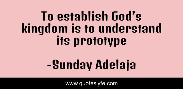 This page presents the quote "To establish God’s kingdom is to understand its prototype". Author of this quote is Sunday Adelaja. This quote is about kingdom, god, prototype, establish, understand,.