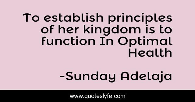 This page presents the quote "To establish principles of her kingdom is to function In Optimal Health". Author of this quote is Sunday Adelaja. This quote is about function, kingdom, health, principles, establish,.