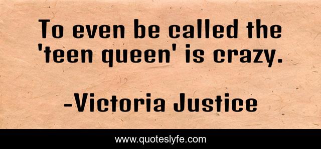 This page presents the quote "To even be called the 'teen queen' is crazy.". Author of this quote is Victoria Justice. This quote is about even, crazy, queen,.