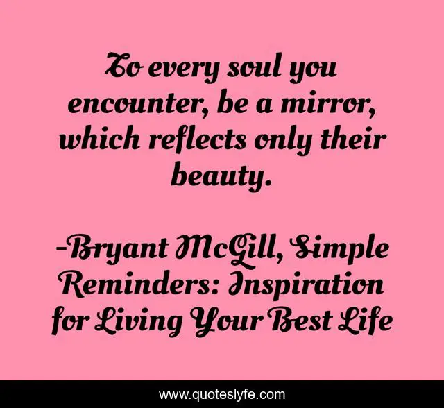 This page presents the quote "To every soul you encounter, be a mirror, which reflects only their beauty.". Author of this quote is Bryant McGill, Simple Reminders: Inspiration for Living Your Best Life. This quote is about beauty, soul, encounter, reflection,.