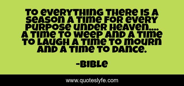 This page presents the quote "To everything there is a season A time for every purpose under heaven.... A time to weep and a time to laugh A time to mourn and a time to dance.". Author of this quote is Bible. This quote is about days, difficult,.
