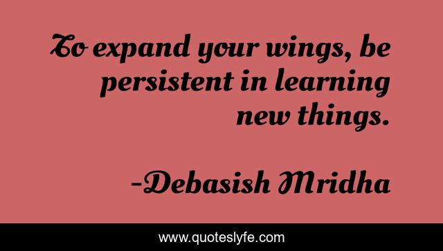 This page presents the quote "To expand your wings, be persistent in learning new things.". Author of this quote is Debasish Mridha. This quote is about be-persistant, philosophy, debasish-mridha, learn-new-things, quotes, debasish-mridha-md, inspirational, enthusiasm, expand-your-wings,.