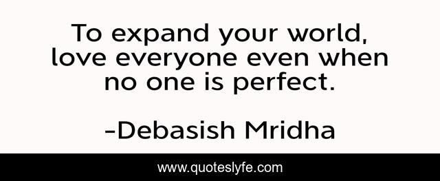 This page presents the quote "To expand your world, love everyone even when no one is perfect.". Author of this quote is Debasish Mridha. This quote is about love, philosophy, debasish-mridha, quotes, expand-your-world, inspirational, enthusiasm, love-everyone, debasish-mridha-m-d,.