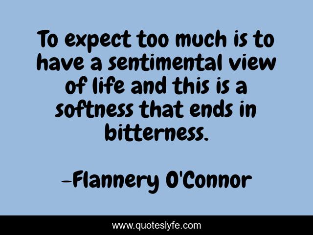 This page presents the quote "To expect too much is to have a sentimental view of life and this is a softness that ends in bitterness.". Author of this quote is Flannery O'Connor. This quote is about realistic, expectations,.