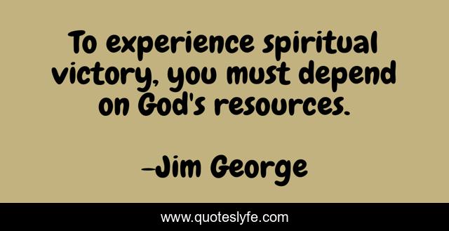 This page presents the quote "To experience spiritual victory, you must depend on God's resources.". Author of this quote is Jim George. This quote is about jim-george, god, christian, victory, spirtual,.