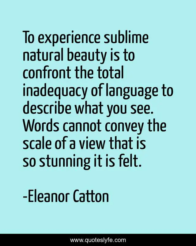 This page presents the quote "To experience sublime natural beauty is to confront the total inadequacy of language to describe what you see. Words cannot convey the scale of a view that is so stunning it is felt.". Author of this quote is Eleanor Catton. This quote is about beauty, language, words,.