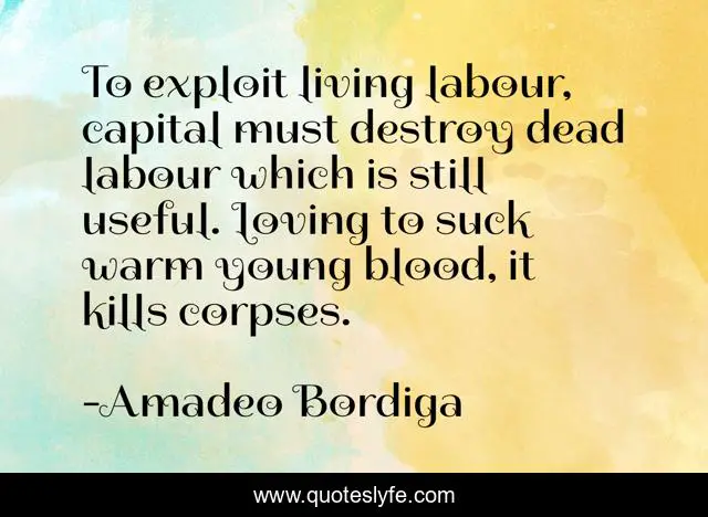 "Amadeo Bordiga Quotes." Quoteslyfe.com, 2025. Fri. 05 Dec. 2025. <https://www.quoteslyfe.com/quote/To-exploit-living-labour-capital-must-destroy-204823>.