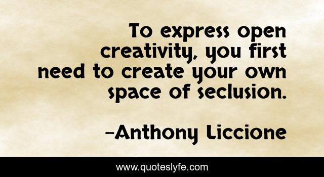 This page presents the quote "To express open creativity, you first need to create your own space of seclusion.". Author of this quote is Anthony Liccione. This quote is about seclusion, space, expression, creativity,.