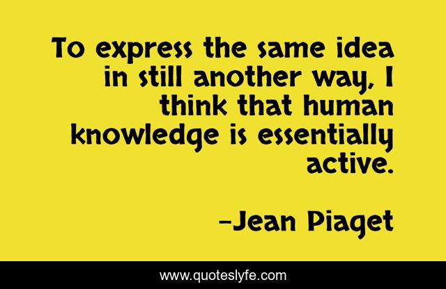 This page presents the quote "To express the same idea in still another way, I think that human knowledge is essentially active.". Author of this quote is Jean Piaget. This quote is about think, human, idea,.