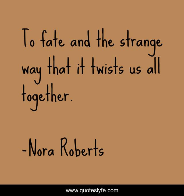 This page presents the quote "To fate and the strange way that it twists us all together.". Author of this quote is Nora Roberts. .
