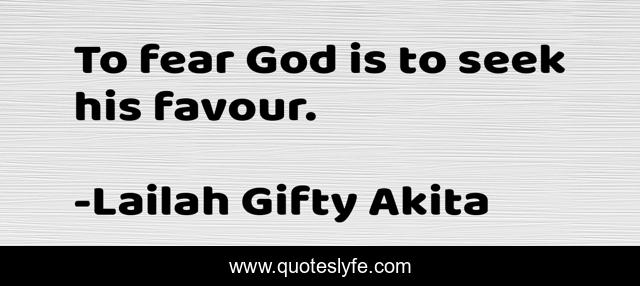 This page presents the quote "To fear God is to seek his favour.". Author of this quote is Lailah Gifty Akita. This quote is about inspiring, christian, god, favour, religion, fear, seek,.