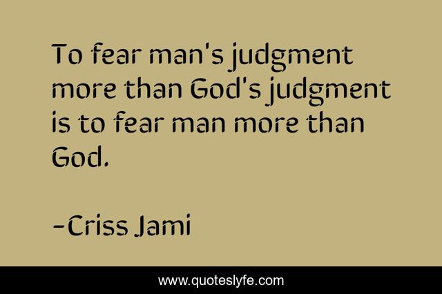"Criss Jami Quotes." Quoteslyfe.com, 2025. Sat. 06 Dec. 2025. <https://www.quoteslyfe.com/quote/To-fear-man-s-judgment-more-than-45994>.