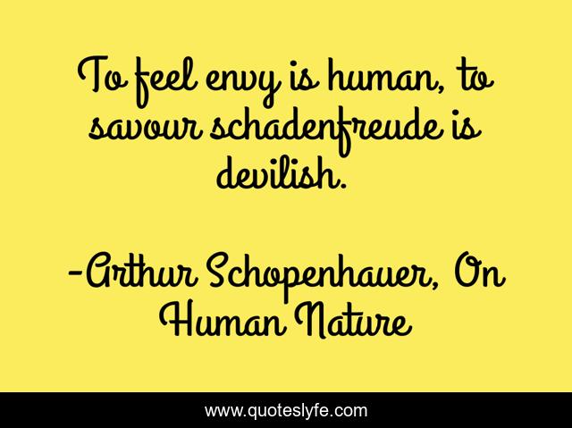 This page presents the quote "To feel envy is human, to savour schadenfreude is devilish.". Author of this quote is Arthur Schopenhauer, On Human Nature. .