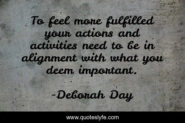 This page presents the quote "To feel more fulfilled your actions and activities need to be in alignment with what you deem important.". Author of this quote is Deborah Day. This quote is about fulfillment, values, purpose, beliefs,.