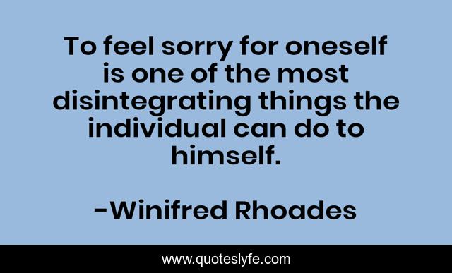 This page presents the quote "To feel sorry for oneself is one of the most disintegrating things the individual can do to himself.". Author of this quote is Winifred Rhoades. This quote is about pity, self,.