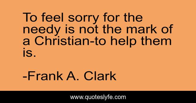 This page presents the quote "To feel sorry for the needy is not the mark of a Christian-to help them is.". Author of this quote is Frank A. Clark. This quote is about helping, people,.