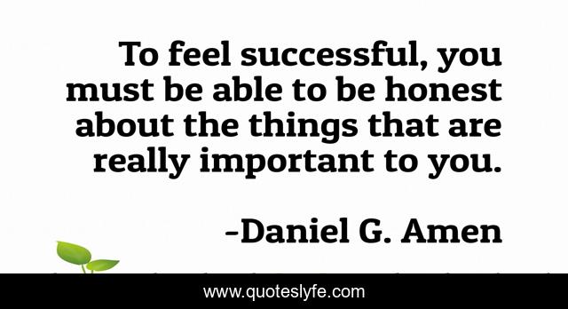 This page presents the quote "To feel successful, you must be able to be honest about the things that are really important to you.". Author of this quote is Daniel G. Amen. This quote is about brain, memory,.