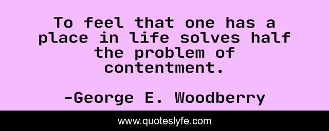 This page presents the quote "To feel that one has a place in life solves half the problem of contentment.". Author of this quote is George E. Woodberry. .