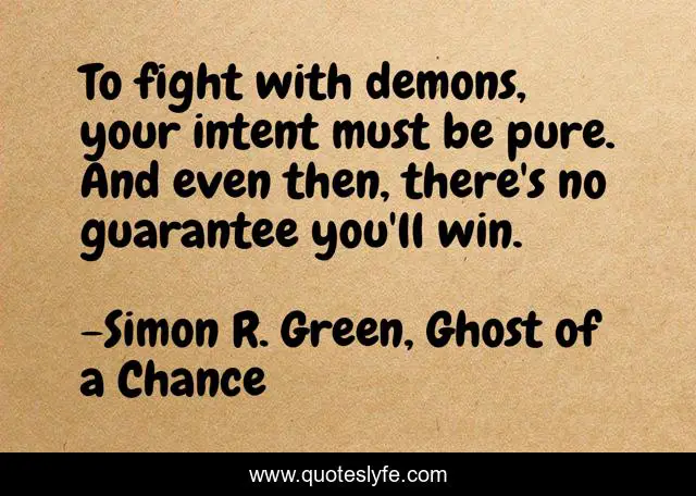 "Simon R. Green, Ghost of a Chance Quotes." Quoteslyfe.com, 2025. Sat. 06 Dec. 2025. <https://www.quoteslyfe.com/quote/To-fight-with-demons-your-intent-must-154366>.