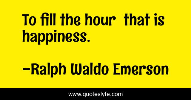 This page presents the quote "To fill the hour──that is happiness.". Author of this quote is Ralph Waldo Emerson. .