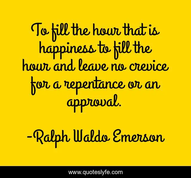 This page presents the quote "To fill the hour that is happiness to fill the hour and leave no crevice for a repentance or an approval.". Author of this quote is Ralph Waldo Emerson. This quote is about day, one,.