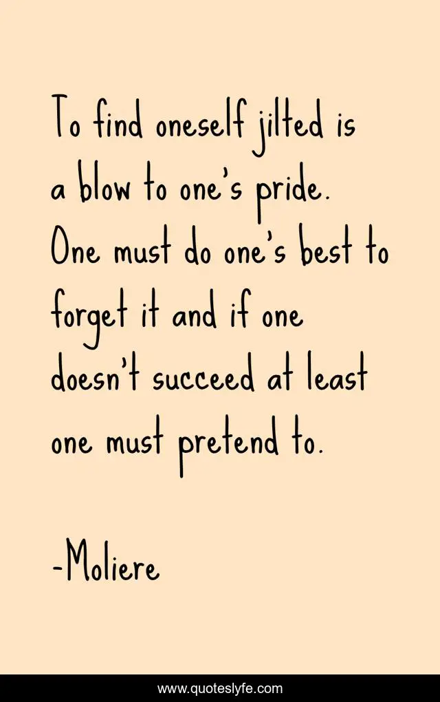 This page presents the quote "To find oneself jilted is a blow to one's pride. One must do one's best to forget it and if one doesn't succeed at least one must pretend to.". Author of this quote is Moliere. This quote is about positive, confidence,.