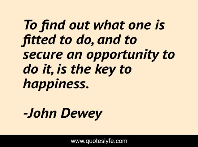This page presents the quote "To find out what one is fitted to do, and to secure an opportunity to do it, is the key to happiness.". Author of this quote is John Dewey. .