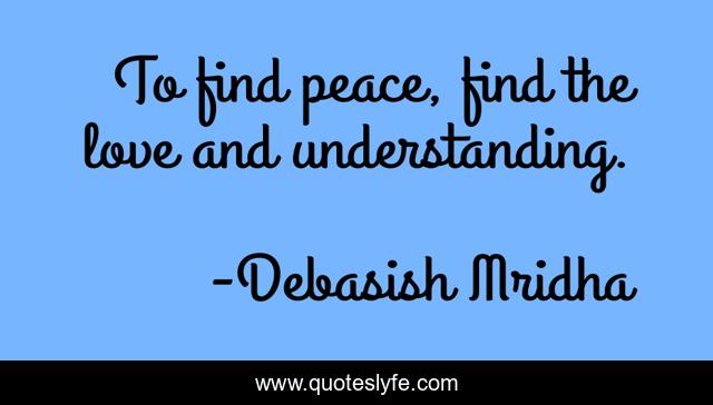 This page presents the quote "To find peace, find the love and understanding.". Author of this quote is Debasish Mridha. This quote is about life, love, knowledge, inspirational, intelligence, philosophy, wisdom, quotes, affection,.