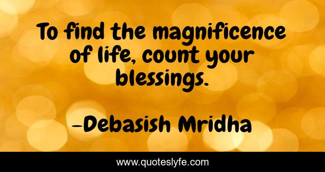 This page presents the quote "To find the magnificence of life, count your blessings.". Author of this quote is Debasish Mridha. This quote is about magnificence-of-life, philosophy, debasish-mridha, thanksgiving, quotes, debasish-mridha-md, inspirational, enthusiasm, count-your-blessing,.