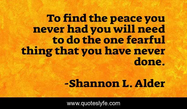 This page presents the quote "To find the peace you never had you will need to do the one fearful thing that you have never done.". Author of this quote is Shannon L. Alder. This quote is about fear, peace,.