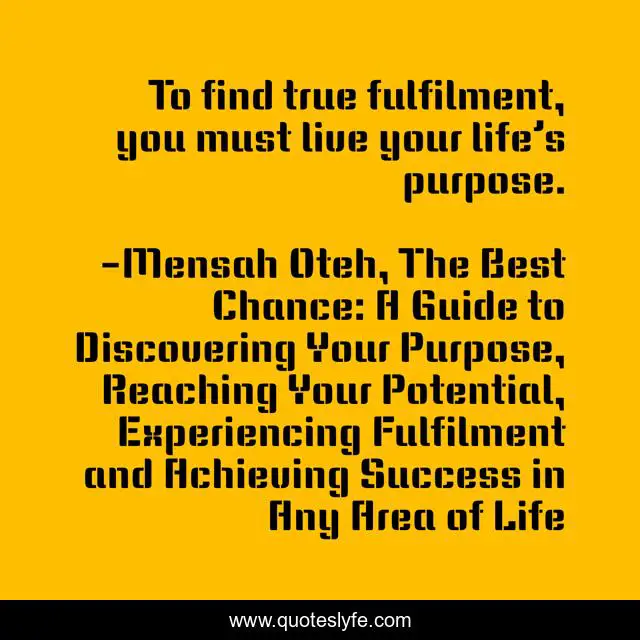 "Mensah Oteh, The Best Chance: A Guide to Discovering Your Purpose, Reaching Your Potential, Experiencing Fulfilment and Achieving Success in Any Area of Life Quotes." Quoteslyfe.com, 2025. Mon. 08 Dec. 2025. <https://www.quoteslyfe.com/quote/To-find-true-fulfilment-you-must-live-15708>.