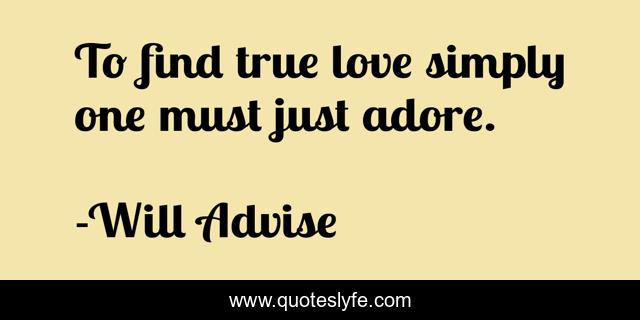 This page presents the quote "To find true love simply one must just adore.". Author of this quote is Will Advise. This quote is about true-love, simplicity, admiration, love, adore, affection,.