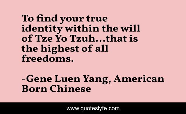 This page presents the quote "To find your true identity within the will of Tze Yo Tzuh...that is the highest of all freedoms.". Author of this quote is Gene Luen Yang, American Born Chinese. This quote is about freedom, true-to-yourself, identity,.