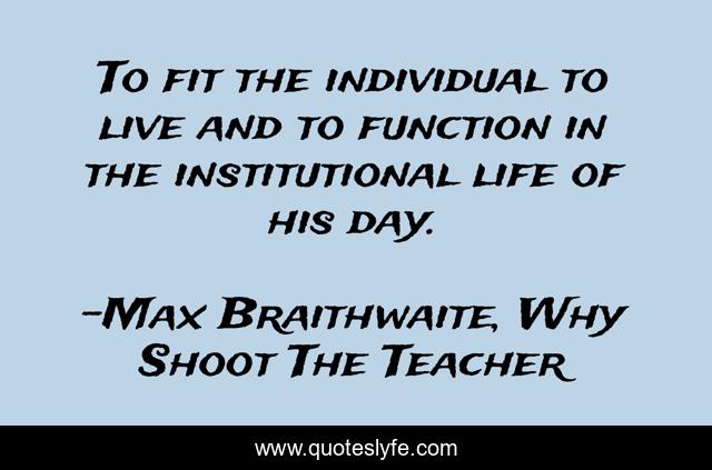 "Max Braithwaite, Why Shoot The Teacher Quotes." Quoteslyfe.com, 2025. Mon. 08 Dec. 2025. <https://www.quoteslyfe.com/quote/To-fit-the-individual-to-live-and-198610>.