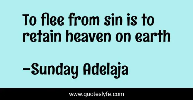 This page presents the quote "To flee from sin is to retain heaven on earth". Author of this quote is Sunday Adelaja. This quote is about earth, heaven, flee, sin, retain,.