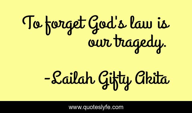 This page presents the quote "To forget God's law is our tragedy.". Author of this quote is Lailah Gifty Akita. This quote is about faith, christian, commandments, theology, life-lessons, self-help, tragedy,.