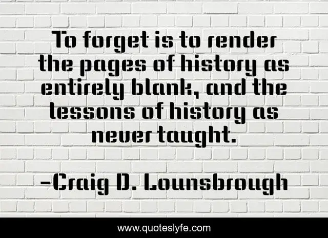 "Craig D. Lounsbrough Quotes." Quoteslyfe.com, 2025. Sun. 07 Dec. 2025. <https://www.quoteslyfe.com/quote/To-forget-is-to-render-the-pages-70613>.