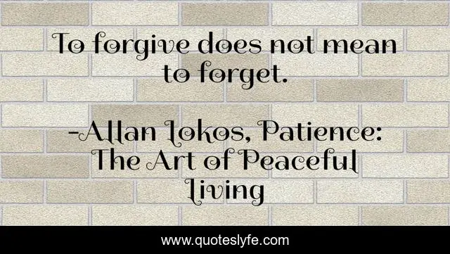 "Allan Lokos, Patience: The Art of Peaceful Living Quotes." Quoteslyfe.com, 2025. Fri. 05 Dec. 2025. <https://www.quoteslyfe.com/quote/To-forgive-does-not-mean-to-forget-195084>.